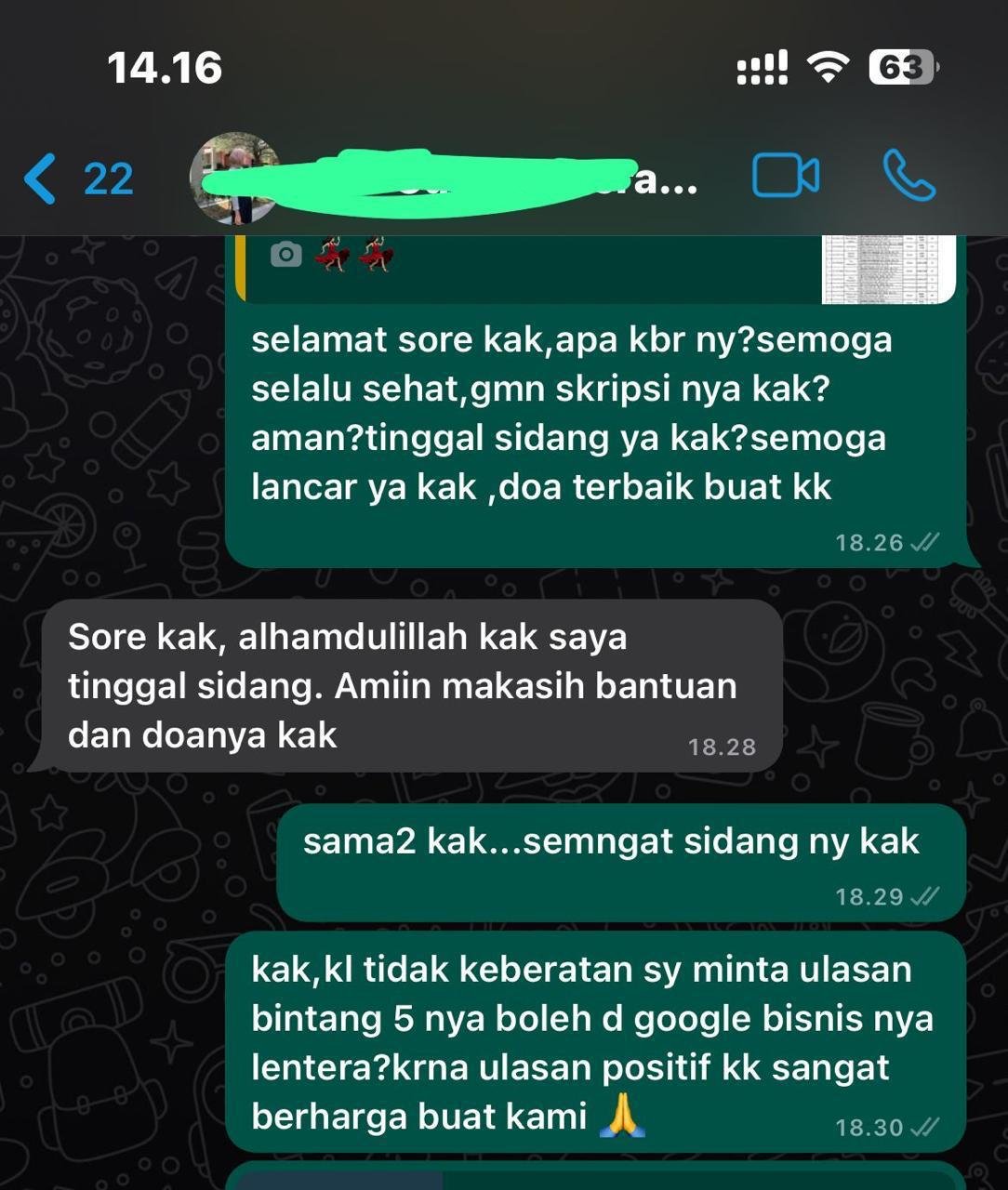 Testimoni Peserta Bimbingan Lentera Skripsi