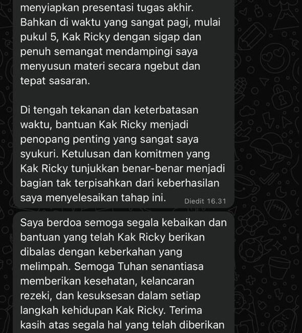 “Pendampingannya bukan disuruh copy, tapi dijelaskan sampai paham. Sangat membantu.”