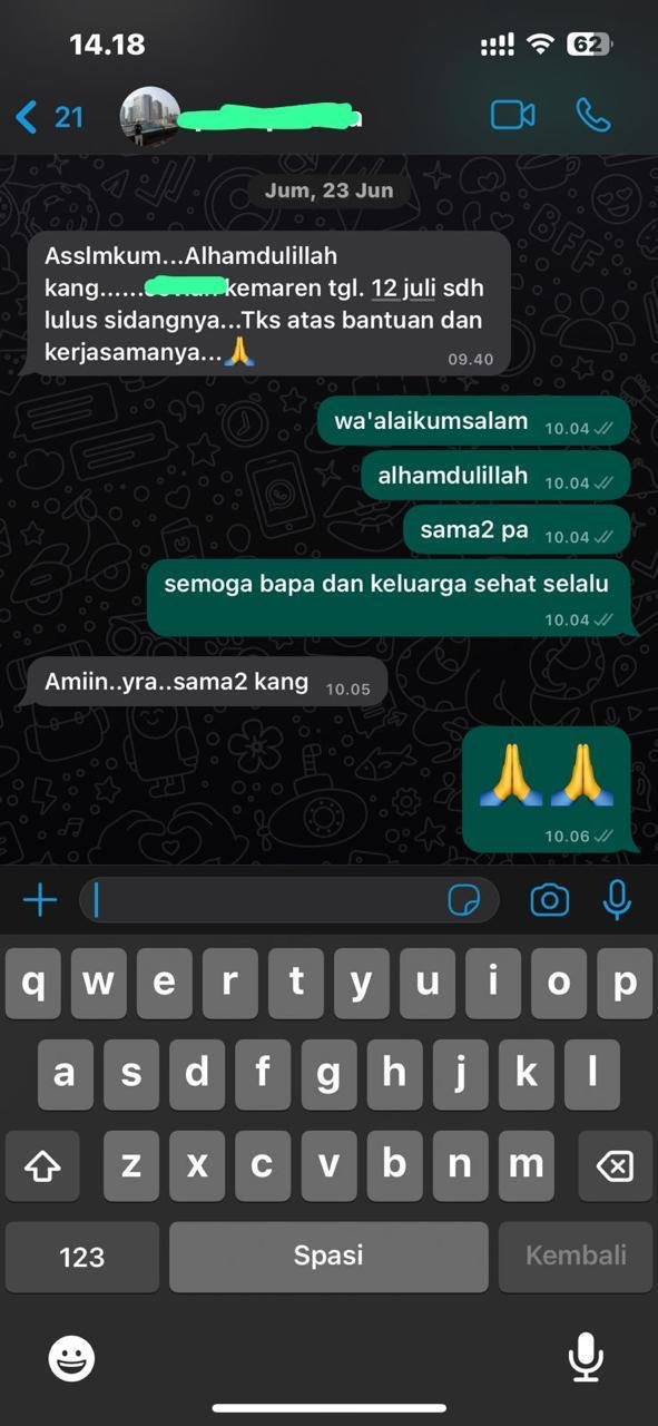 “Lebih tenang menghadapi sidang karena semua dipersiapkan dengan baik dan sesuai aturan kampus.”